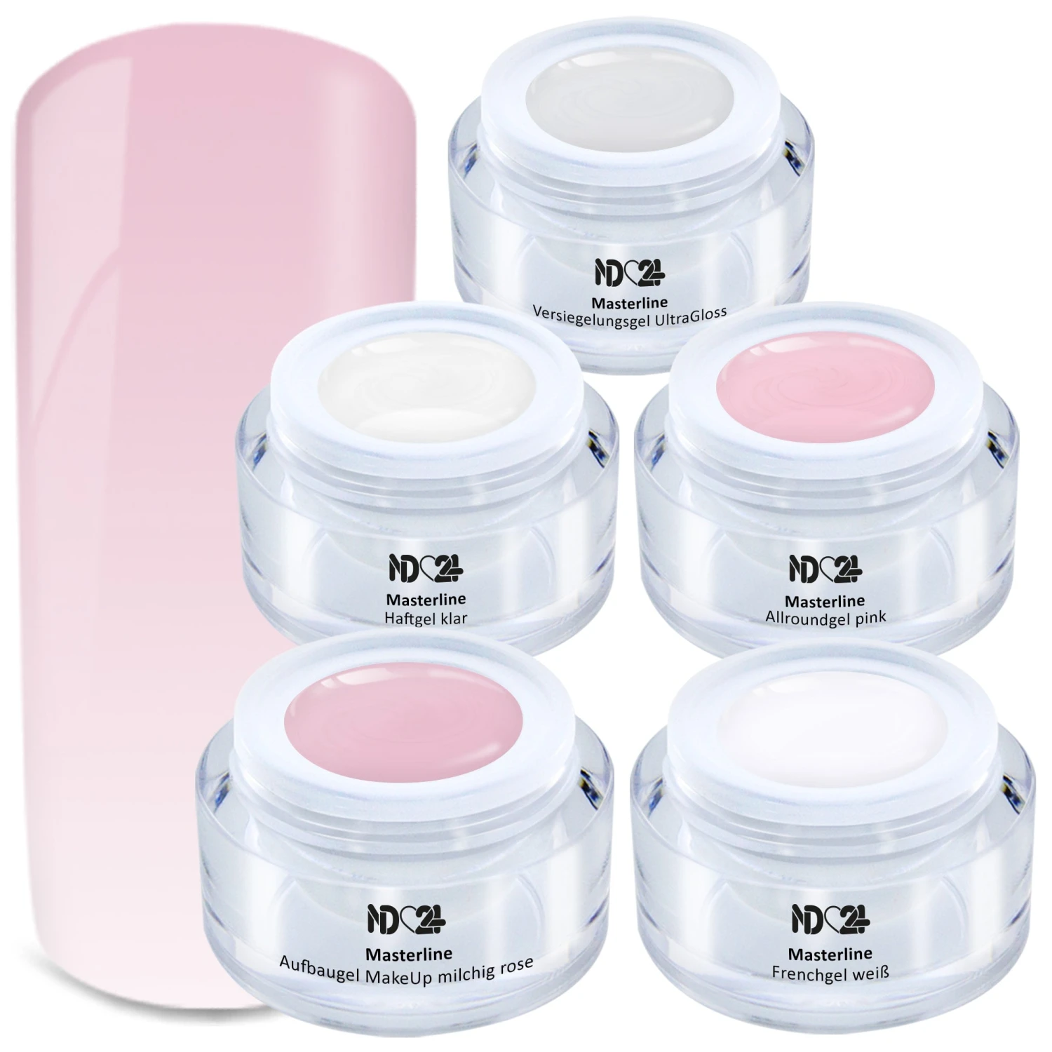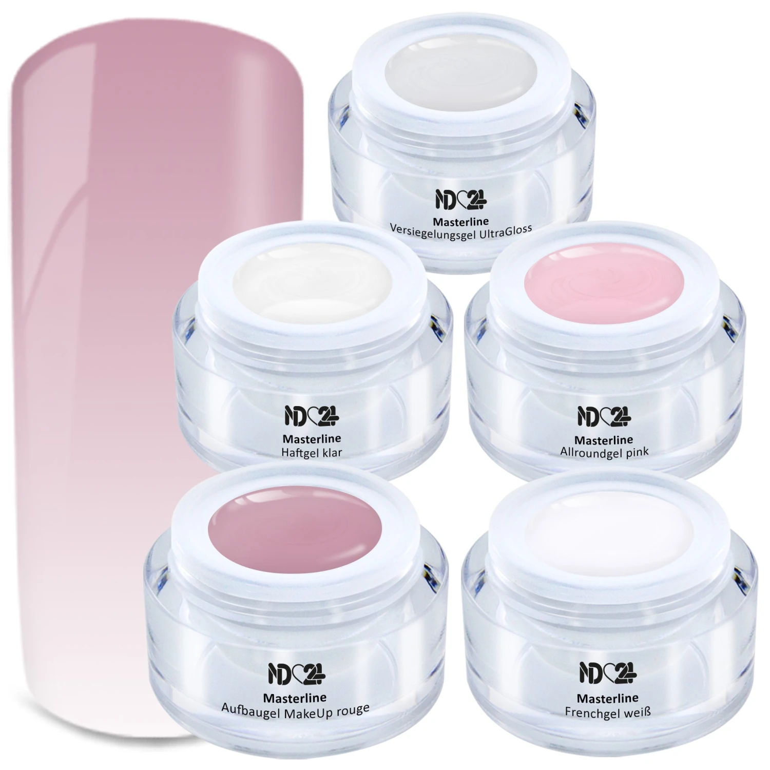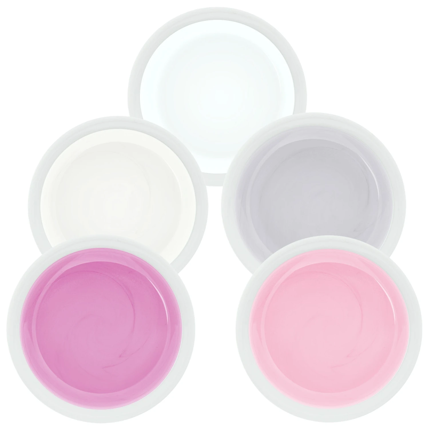 Alle Gele in top Premium Qualität, die Du für ein natürlichen Babyboomer Look brauchst in einem praktischen Set – Sofort loslegen! Für alle, die ihrem French Design einen eleganten Twist durch einen fließenden Verlauf von der milchigen Frenchspitze zum milchigen Nagelbett geben wollen. Premium Gel Set Inhalt: