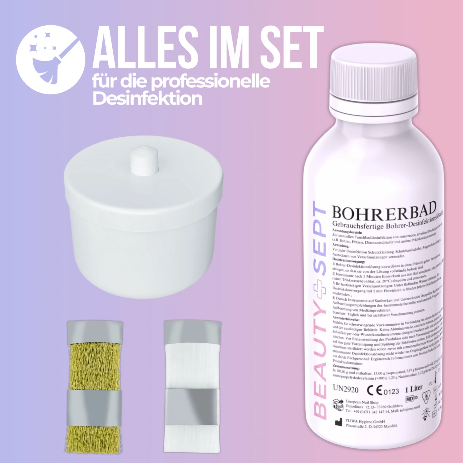 Das Bit Cleaner Kit ist die ultimative Lösung für die hygienische Reinigung und Pflege von Fräserbits und rotierenden Präzisionsinstrumenten. Speziell für DRILLX Bits, aber auch für alle anderen Fräserbits im Nageldesign entwickelt, sorgt dieses Set für eine schonende und zugleich gründliche Reinigung – für maximale Langlebigkeit deiner Werkzeuge.