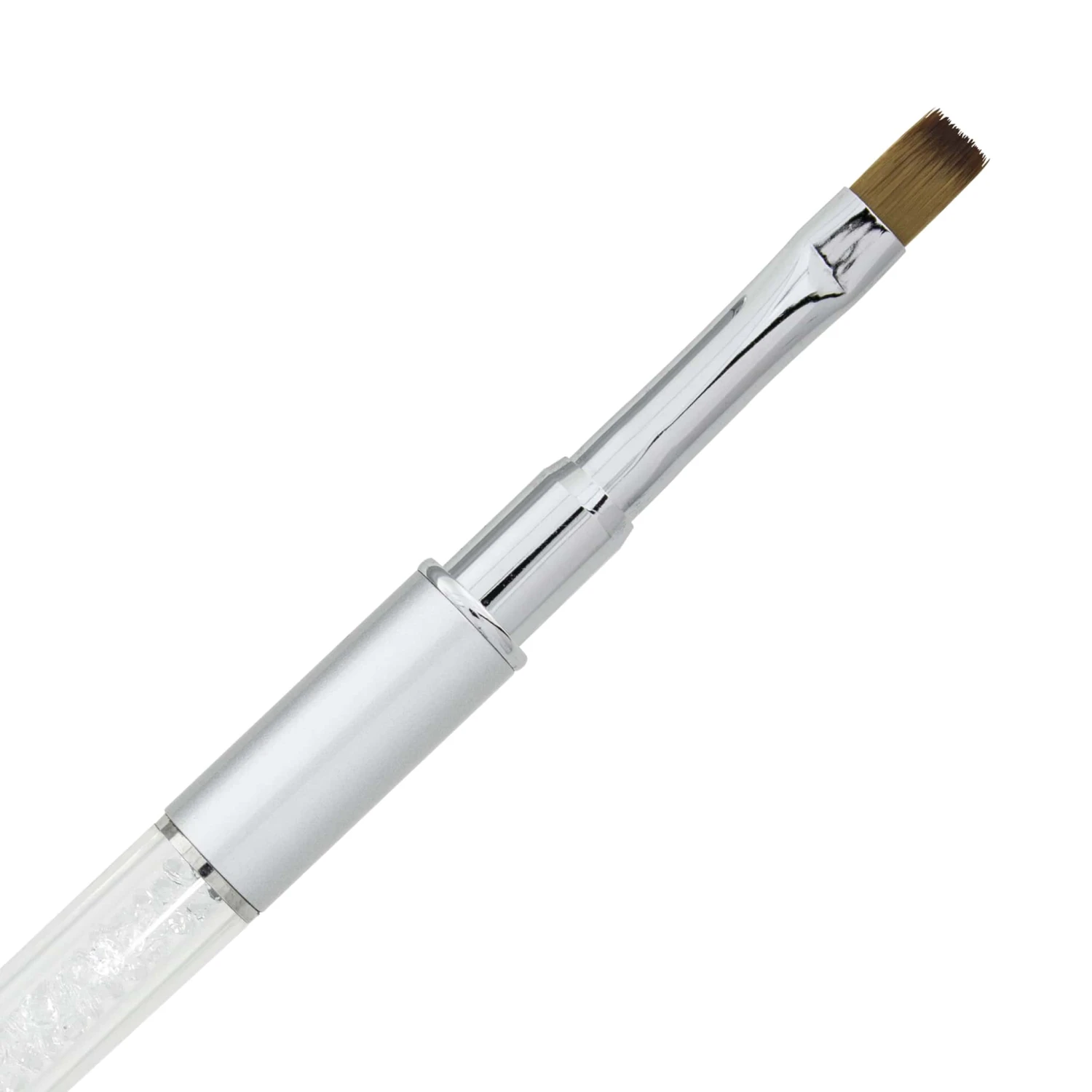Schicker Feinhaar Gel Pinsel mit optimalen Eigenschaften für die Gel Modellage, bestens geeignet für den Gelauftrag mit allen UV-Gelen. Sehr handlich und liegt dank der ergonomischen Form gut in der Hand und sorgt für ein angenehmenes arbeiten. Die Synthetikhaare sind acetonbeständig und lassen sich mit einem Pinsel Reiniger schonend reinigen. Pinselstiel mit stylischer Glitterbefüllung und silberner Zwinge