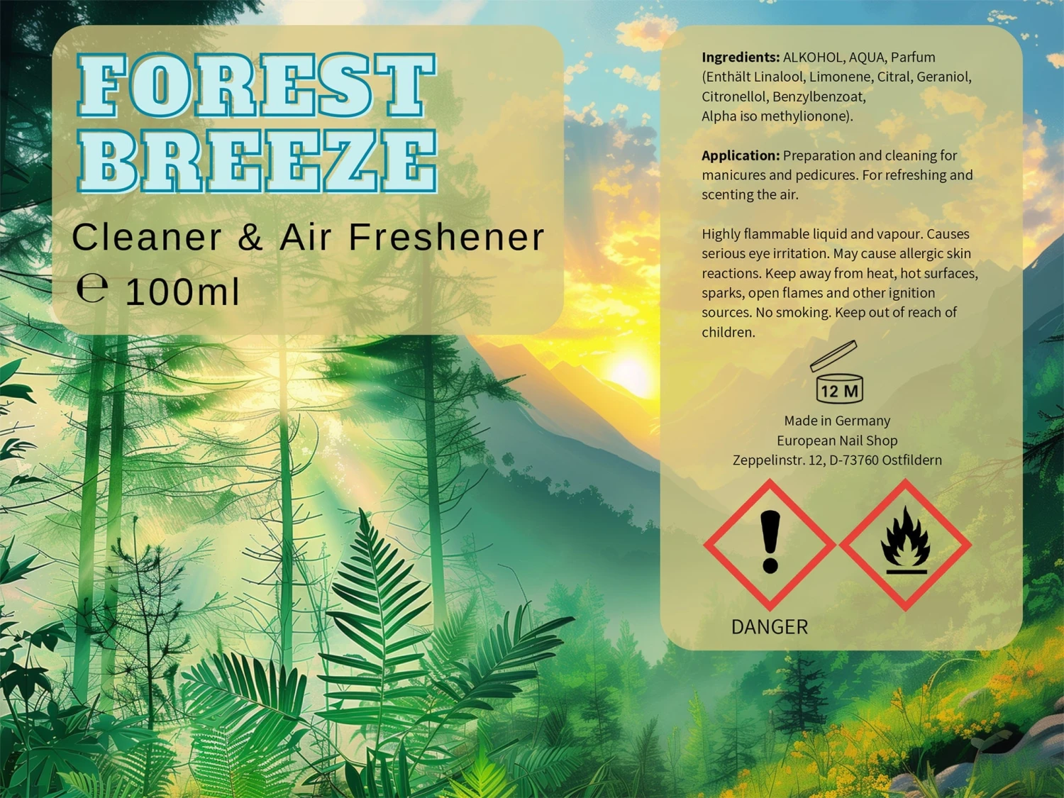 Der Forest Breeze Cleaner & Air Freshener bringt die frische Brise eines Waldes in jeden Raum. Ideal für den Einsatz zu Hause oder für eine einladenden Atmosphäre im Nagelstudio. Die Duftkomposition „Forest Breeze“ vereint belebende Zitrusnoten mit beruhigenden krautigen und holzigen Akkorden, die eine entspannende und erdende Umgebung schaffen.