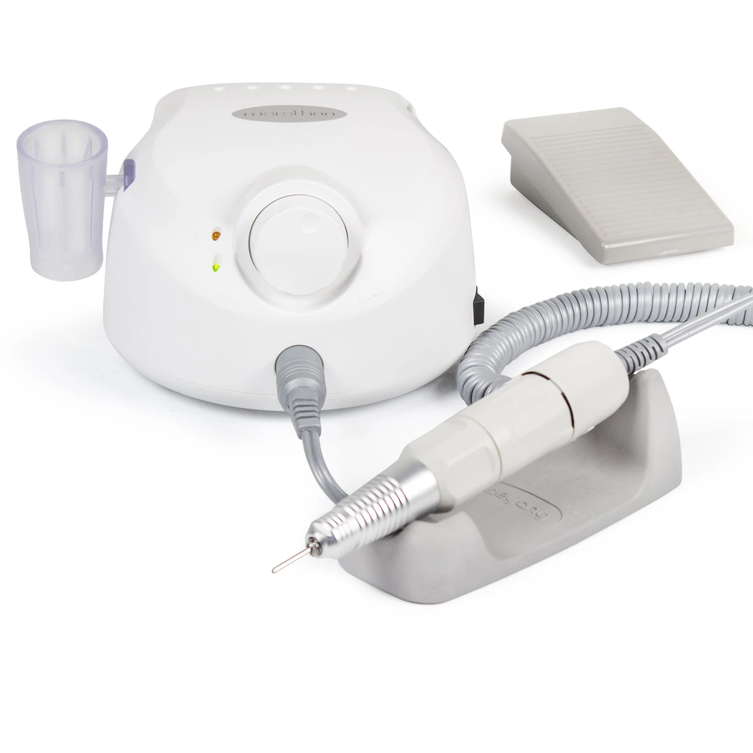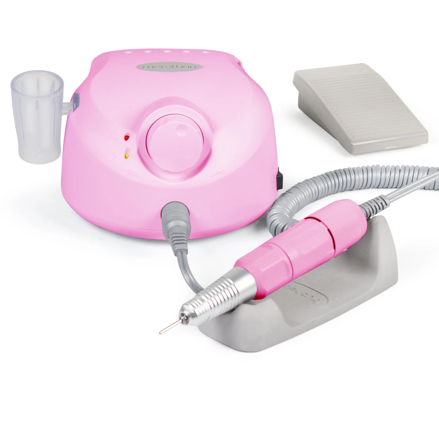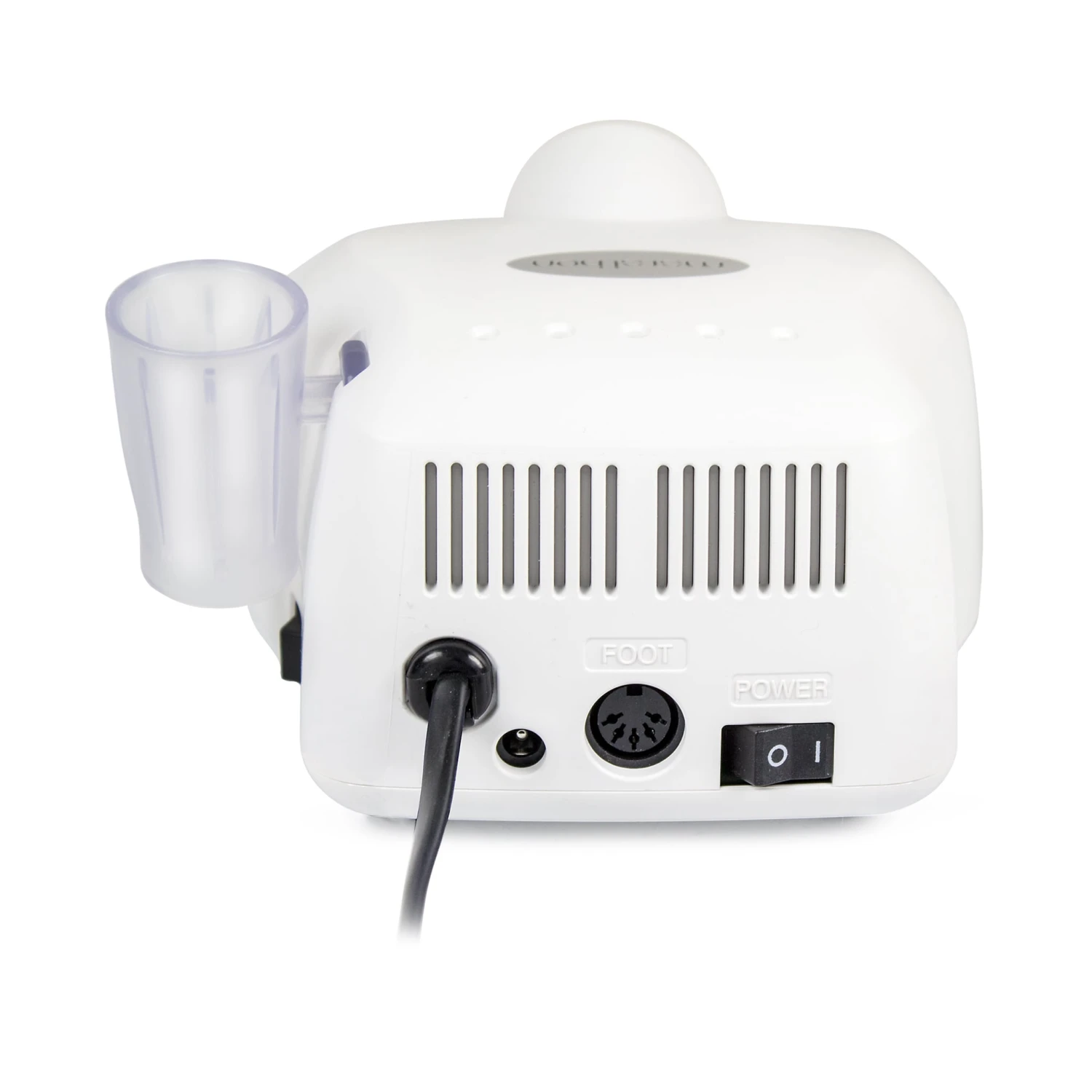 Diese Elektrische Feile wurde für den professionellen Einsatz in Nagelstudios und Fußpflegepraxen konstruiert und genügt daher höchsten Ansprüchen. Die Twist-Lock Funktion am Handstück dieses Nagelfräser – die ähnlich einer Bohrmaschine funktioniert – ermöglicht einen schnellen und einfachen Wechsel der Hartmetallfräser, Diamantschleifer und aller anderen Bits.