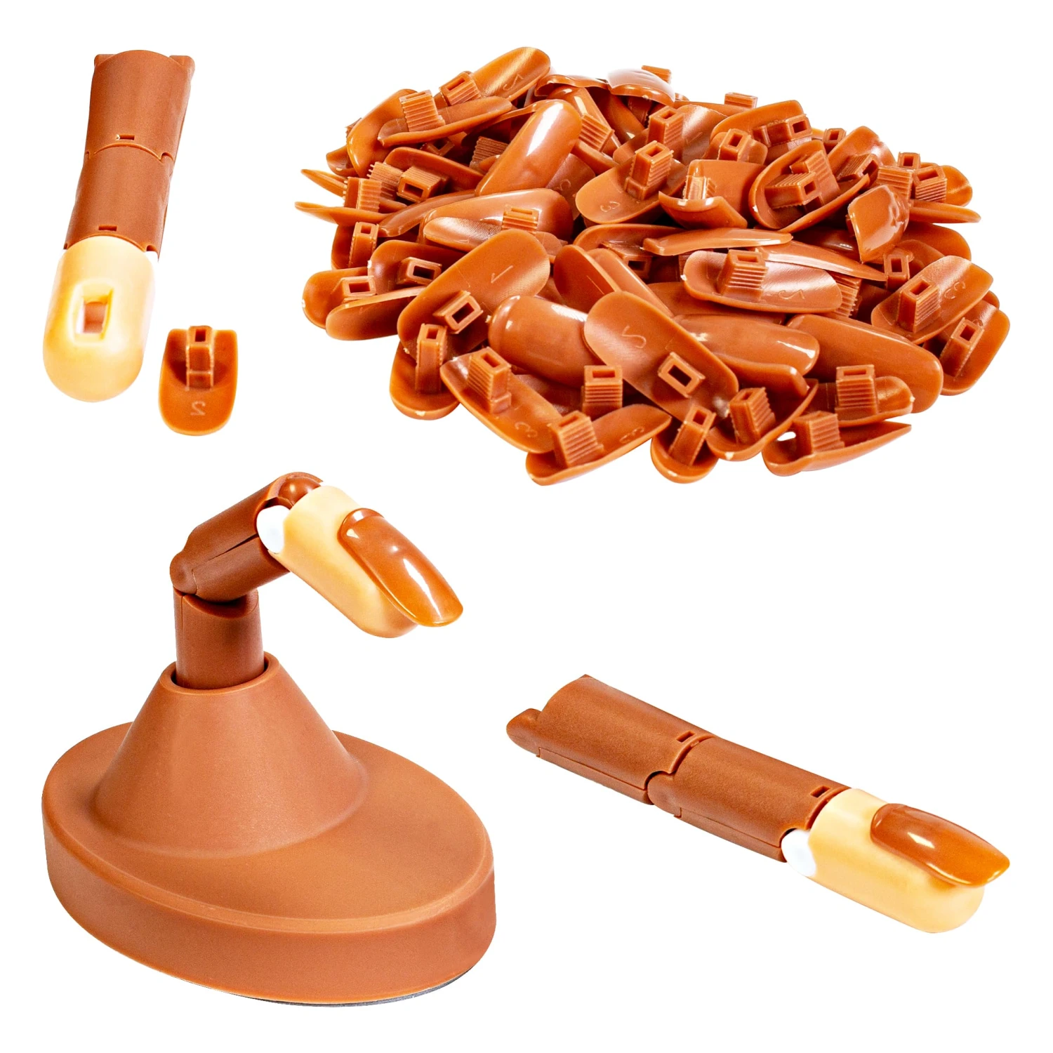 • Lieferung Set: 3 Übungsfinger, Halterung und 100 x Übungsnägeln in 5 versch. Größen