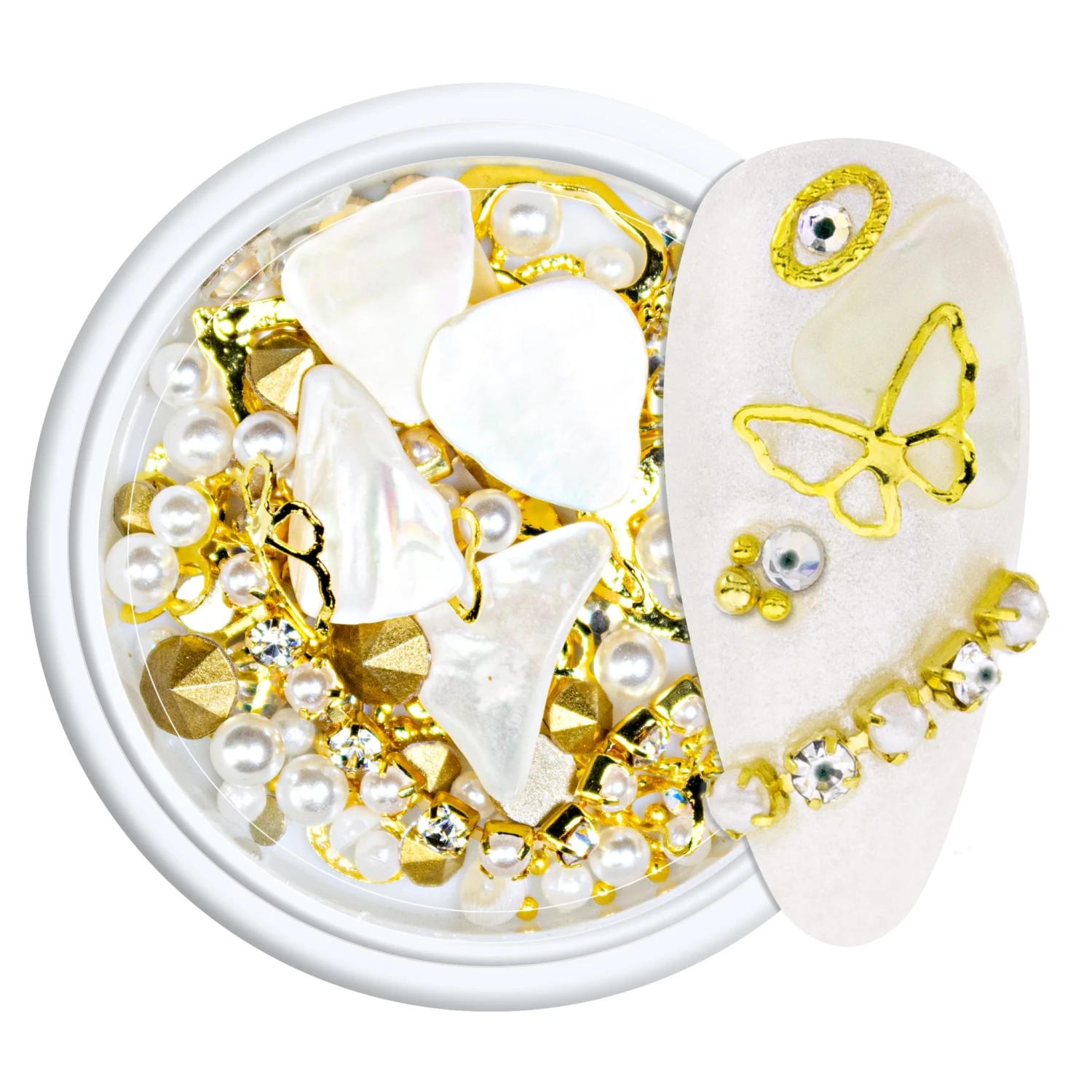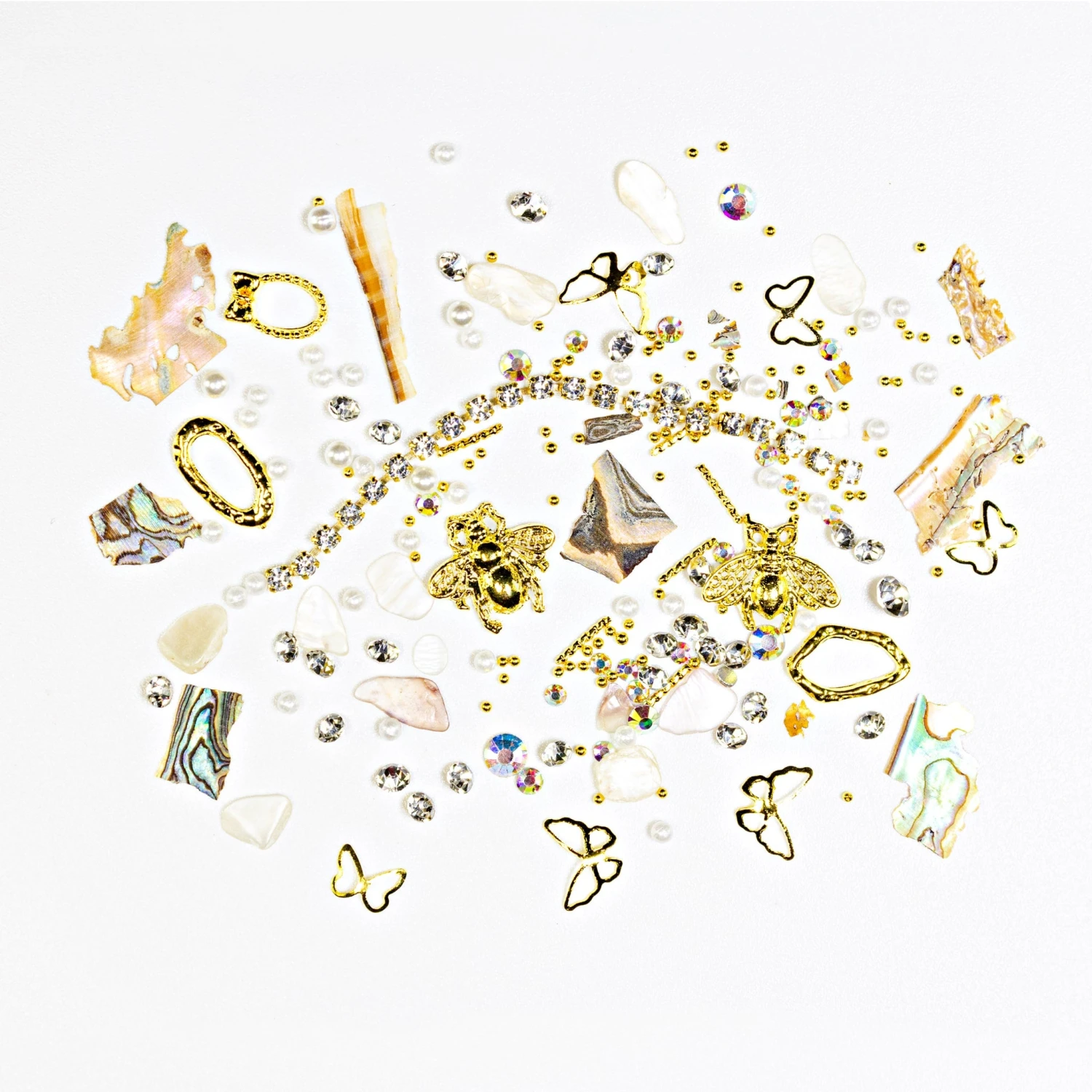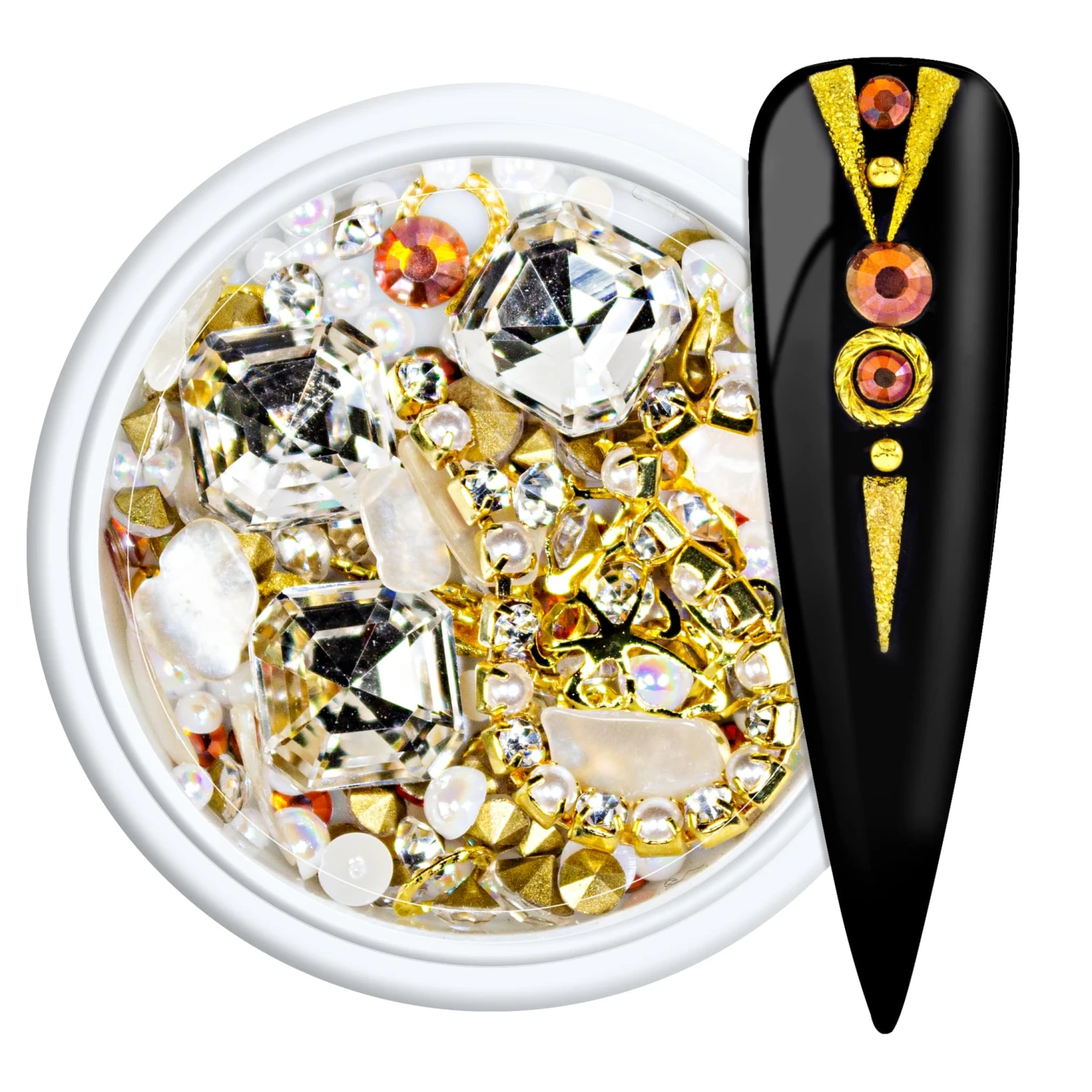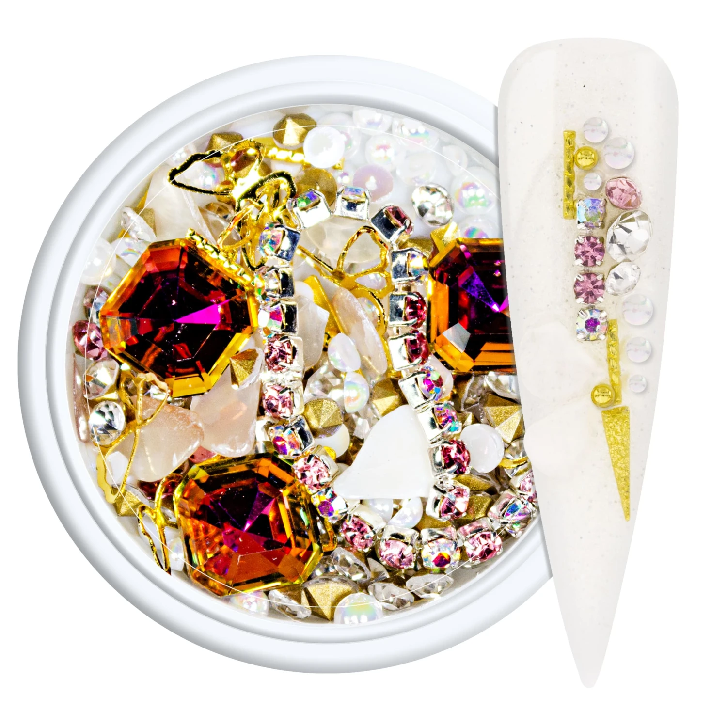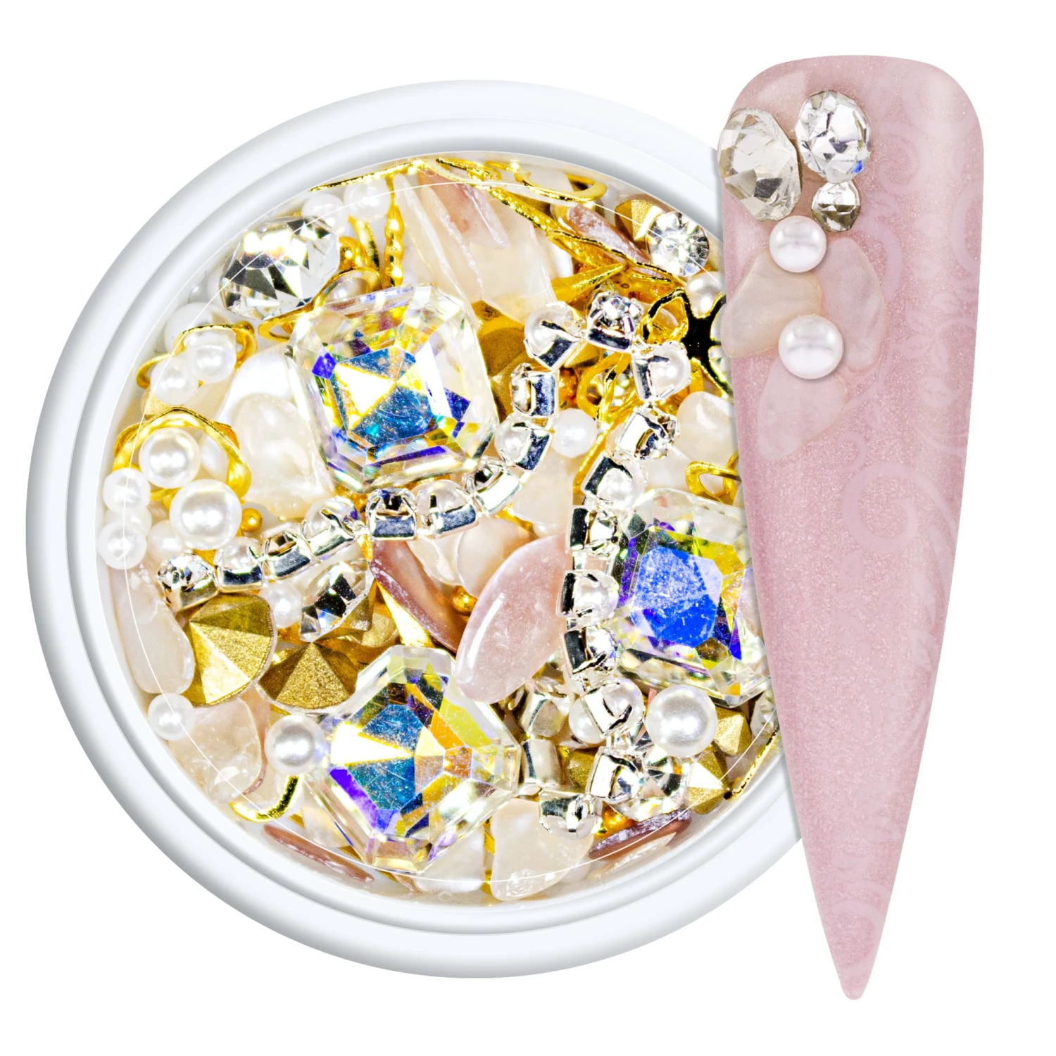 Ein faszinierender Nailart Strass Pearl Mix aus Overlays, Inlays, Perlen, Diamonds und vielem mehr, der atemberaubende Möglichkeiten für Ihr Naildesign bietet.