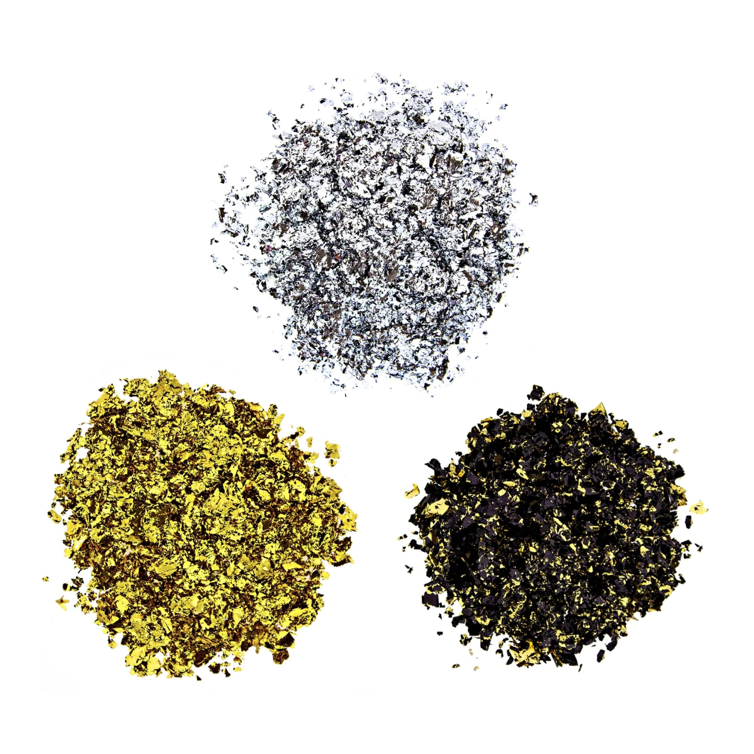 Set Inhalt: Nailart Foil Flakes gold + silver + black-gold