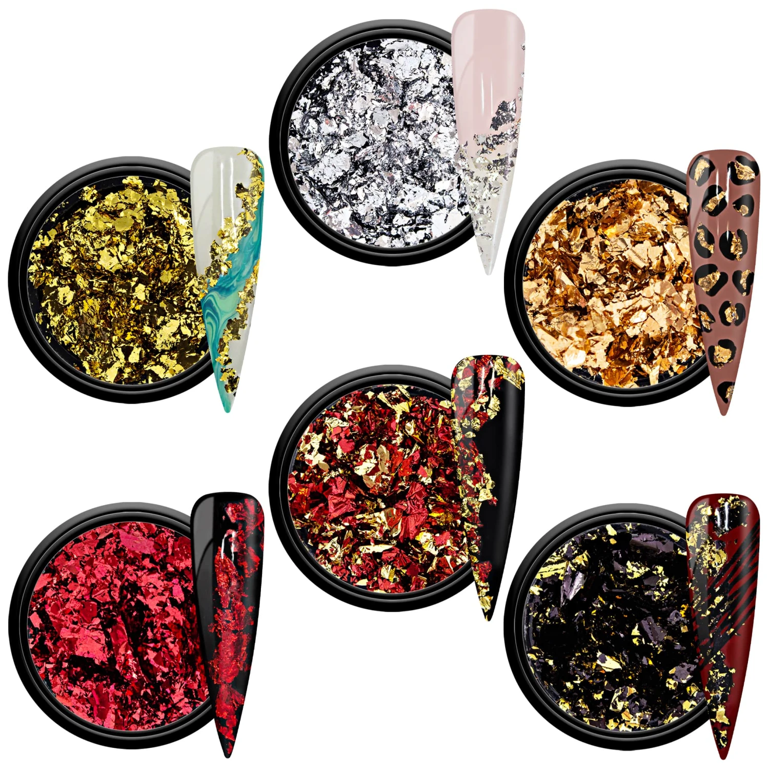 Nail Art Foil Flakes bringen faszinierend tolle Effekte und aufregende metallische Muster auf Ihre Nagelspitzen. Die hauchdünnen, leicht statischen Folien sin einfach zu verarbeiten.
