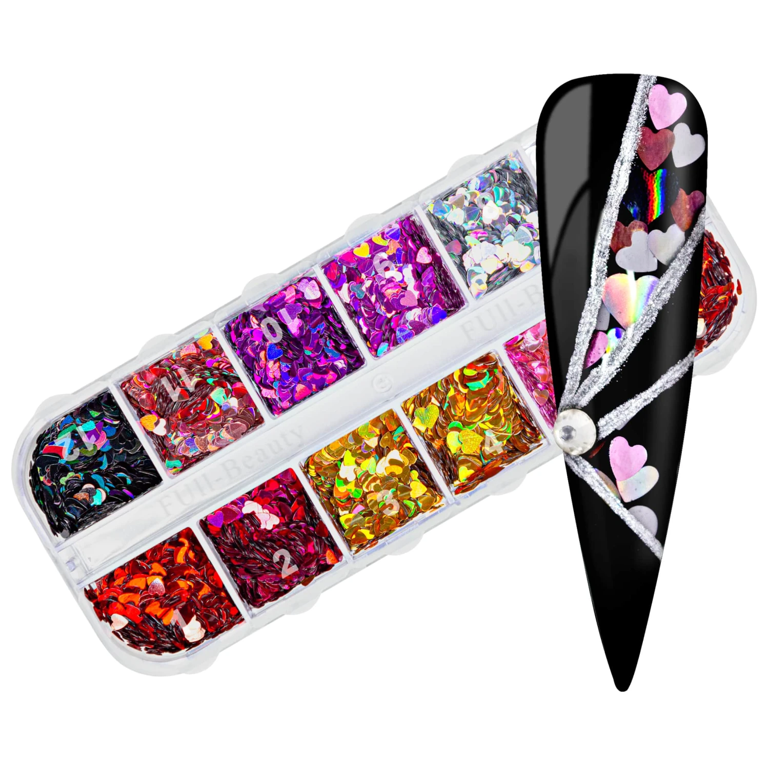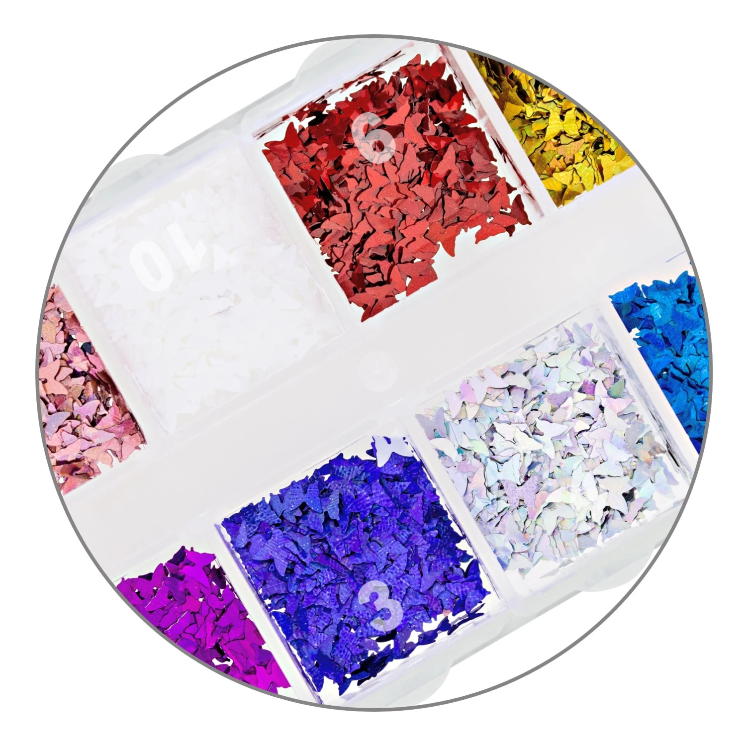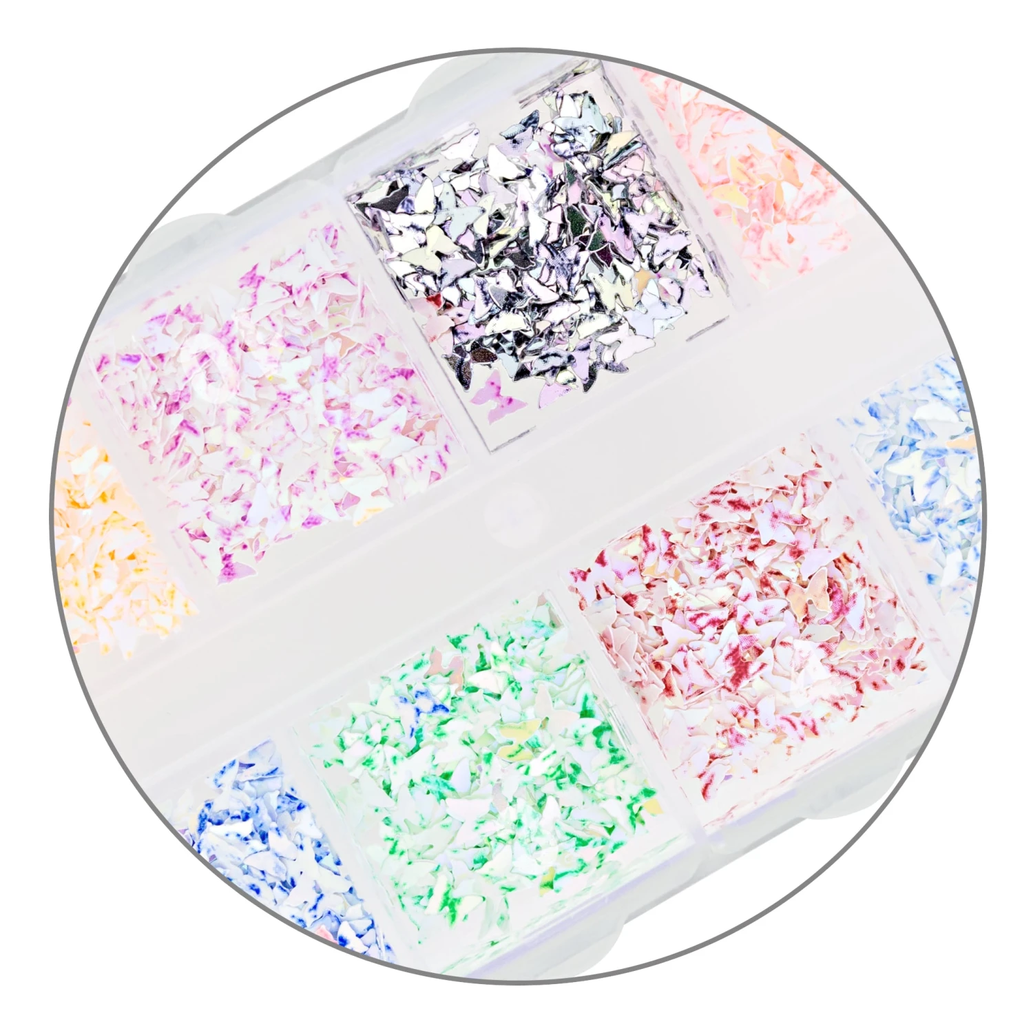 Unsere Inlay Flakes Box beinhalten unterschiedliche Formen und Farben, sodass Sie für jede Gelegenheit das passende Nageldesign kreieren können – egal ob dezent oder extravagant. Die praktische Aufbewahrungsbox erleichtert die Handhabung und ermöglicht eine übersichtliche Sortierung der Farben.
