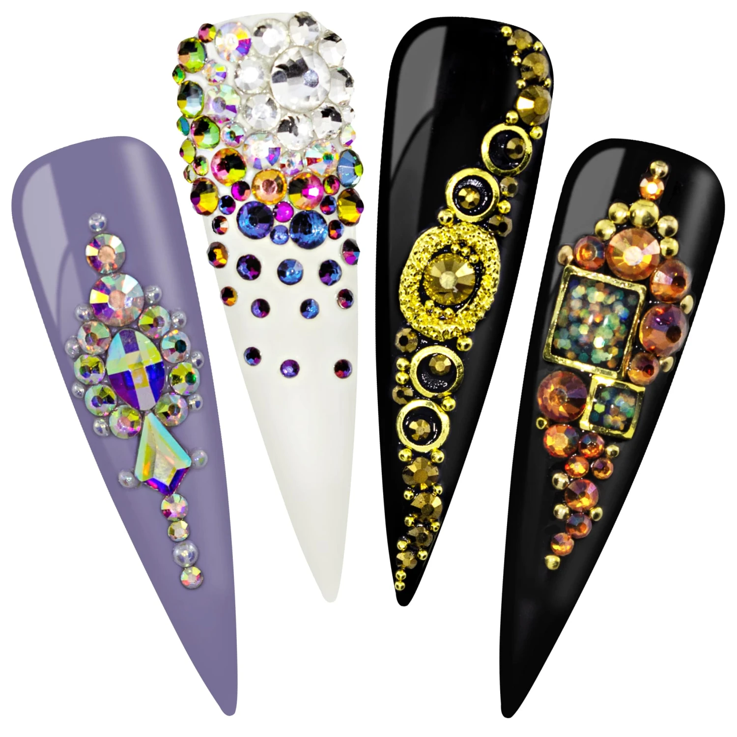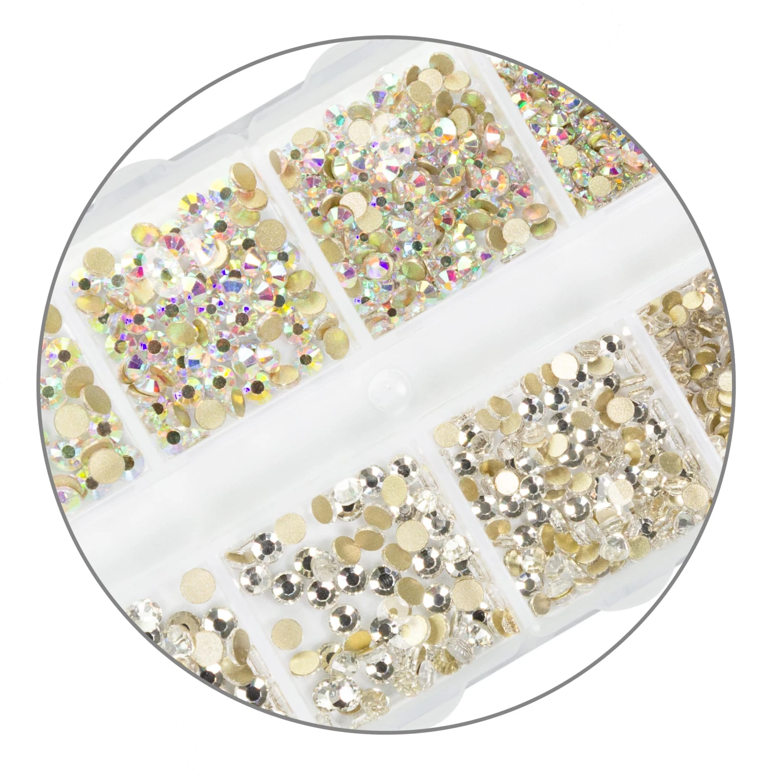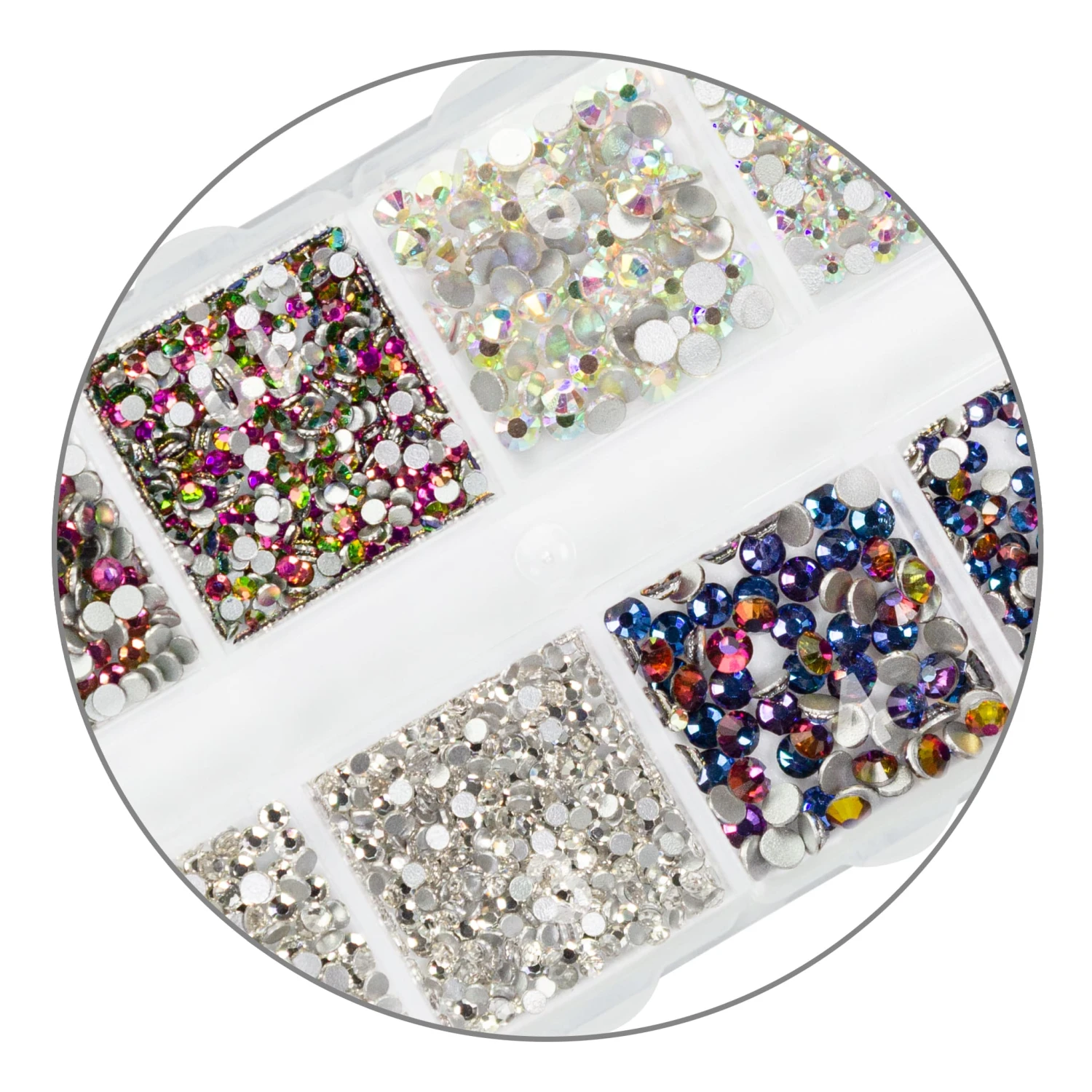 Mit unserer Strassstein Box haben Du immer die passenden Schmucksteinchen für eine wundervolle Nail Art zur Hand. Die Fächer sind rundherum geschlossen, sodass keine Steinchen in ein anderes Fach rutschen kann. Die in einer schönen kristallklaren Hartplastikbox mit separat abnehmbarem Deckel dir das Arbeiten vereinfachen. Die schönen geschliffenen funkelnden Strass Steine eignen sich perfekt, um deine Nägel zu veredeln und zu einem echten Eyecatcher zu gestalten.