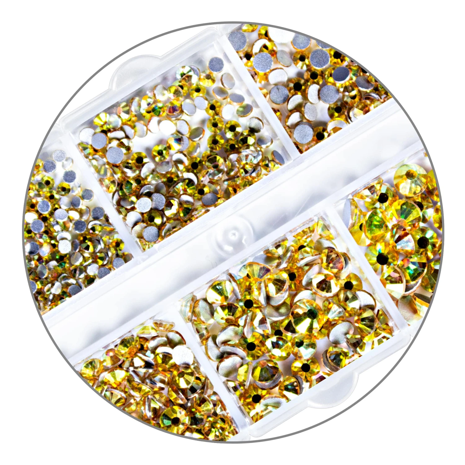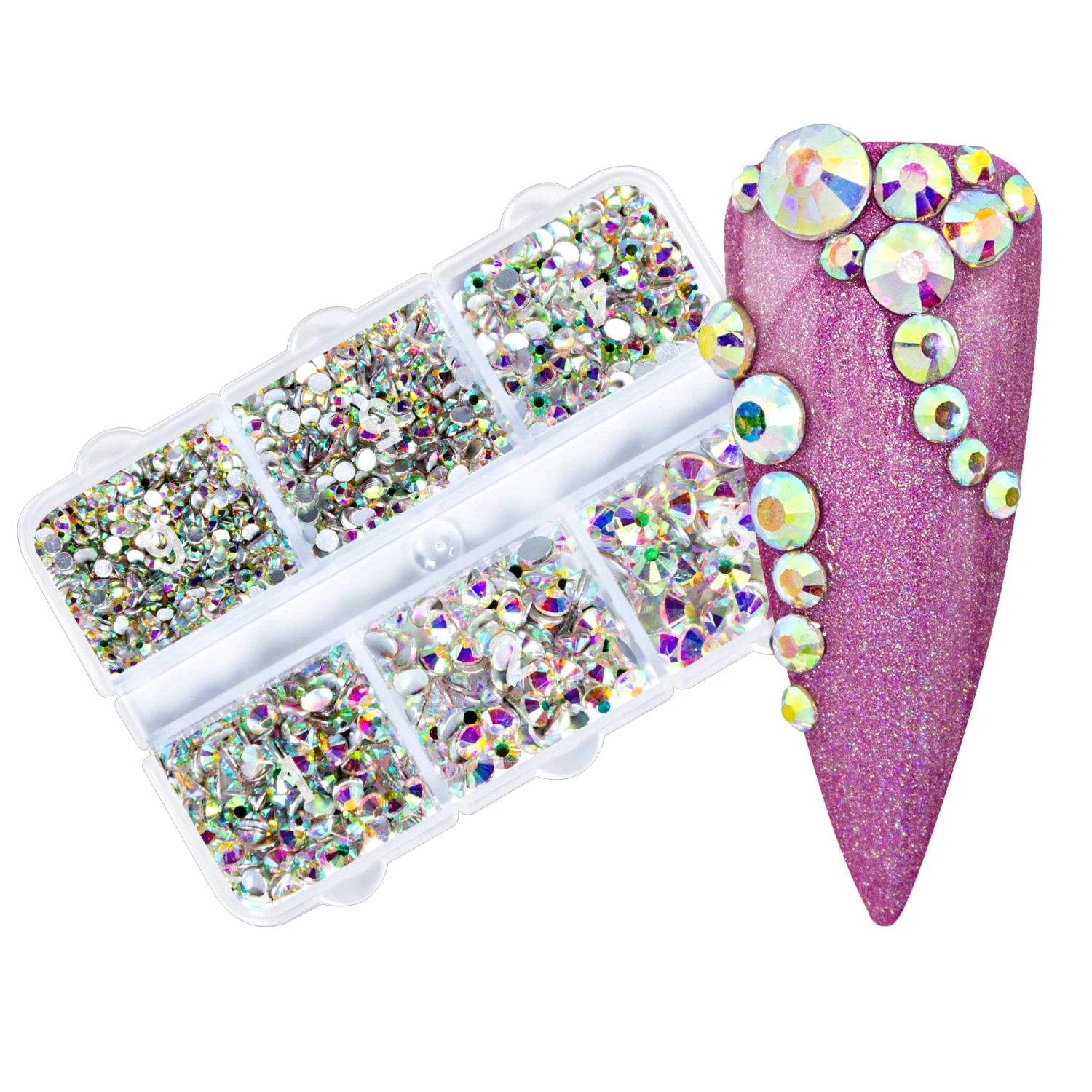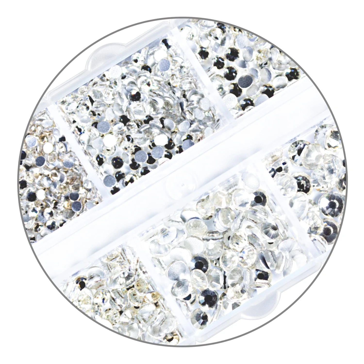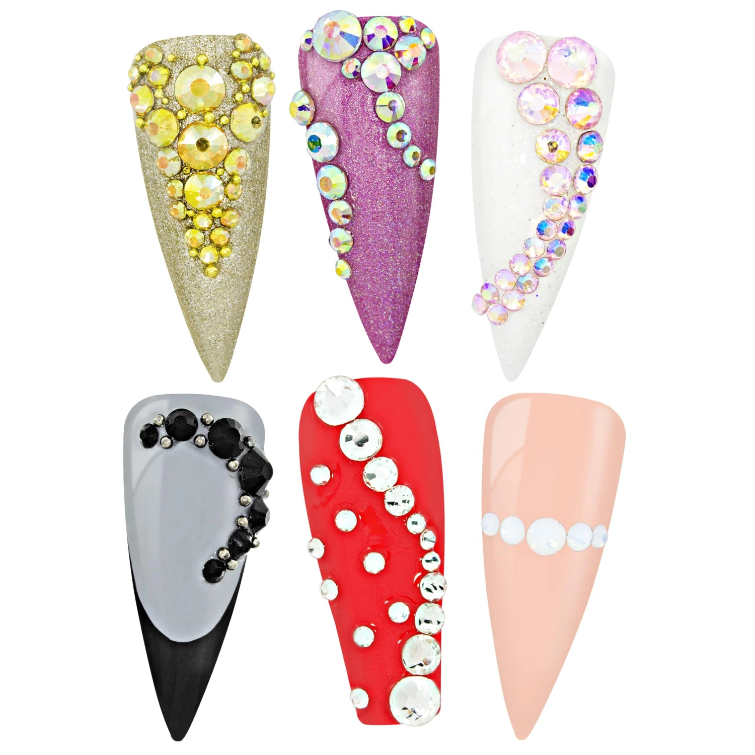 Das glamouröse Strass-Display in anspruchsvoller Optik verleiht Ihrem Nageldesign besondere Akzente. In einer übersichtlichen Sortierbox sind sechs verschiedene Größen an funkelnden Steinchen enthalten, die als runde und reizvolle Accessoires jedes Nailart-Design aufwerten. Die edlen Schmucksteine veredeln einzeln oder in Kombination jede Nailart und sorgen für eine anmutige Ausstrahlung.