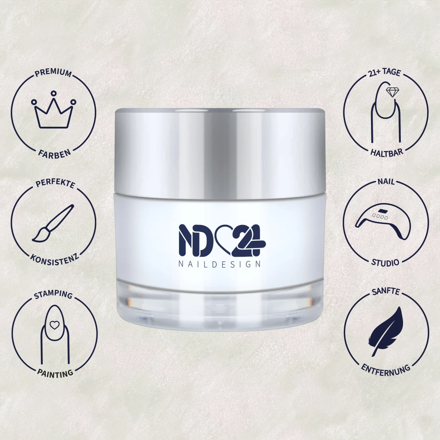 Entdecken Sie unsere revolutionäre Gel-Serie, die sich ganz einfach mit unserem Premium Remover Cream ablösen lässt! Dank der reichhaltigen Pigmentierung benötigen Sie nur eine Schicht unseres Soak Off Color Gels, um atemberaubende Ergebnisse zu erzielen. Mit einer Schicht Soak Off Gel Rubber Base, einer dünnen Schicht Soak Off Color Gel und dem Soak Off Gel Top Coat haben Sie im Handumdrehen eine langanhaltende, leicht entfernbare Naturnagelverstärkung, die dank ihrer dünnen, stabilen Optik auch noch sehr natürlich aussieht. Sie können diese Produkte auch mit anderen Gel-Serien kombinieren, allerdings entfällt in diesem Fall der Soak-Off-Effekt, da der Remover die Altmodellage sonst angreifen und beschädigen könnte. Verleihen Sie Ihren Nägeln jetzt das gewisse Extra mit unserer Gel-Serie!
