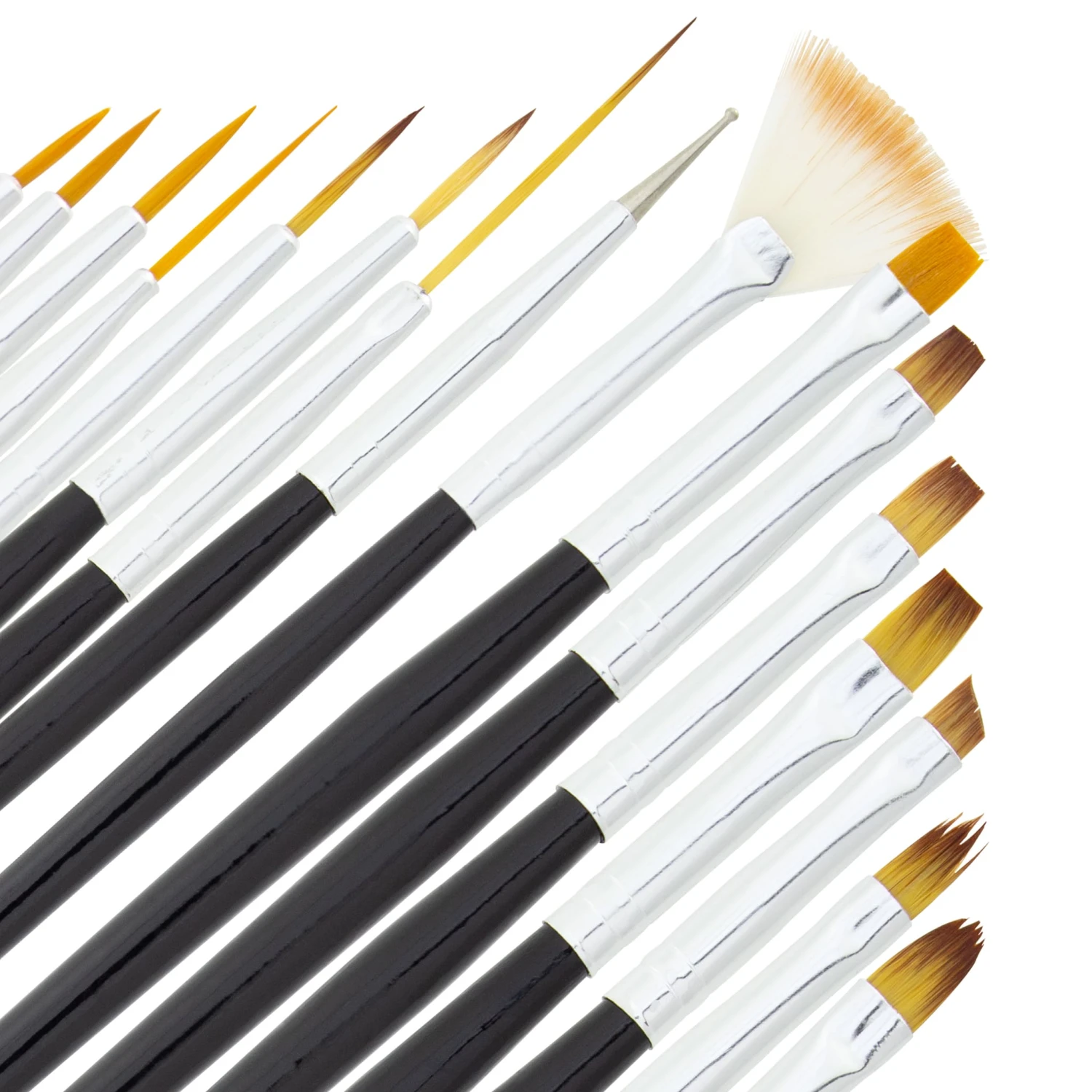 Ein Pinsel Komplettset 16-teilig mit hochwertigem Feinhaar – Sehr fein, elastisch und formstabil – mit allen notwendigen Pinsel für die Gelmodellage: