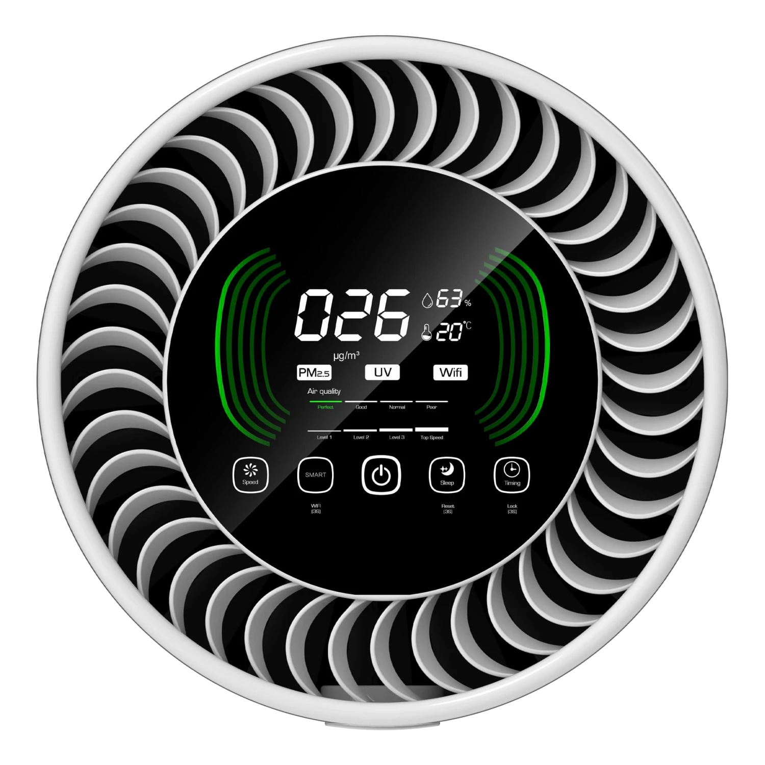 - OLED-Display mit Anzeige der Luftqualität, Temperatur, Luftfeuchtigkeit, Materialverbrauch und zur Steuerung des Gerätes